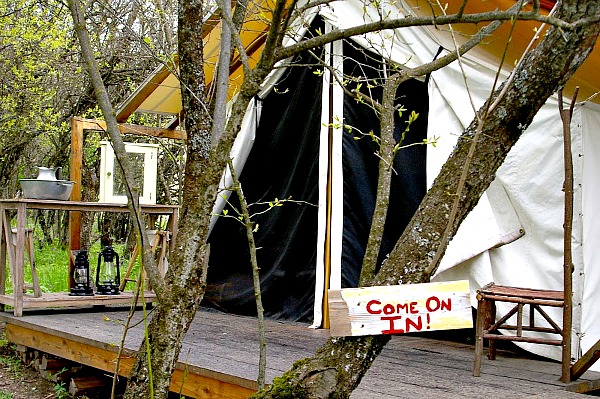 IDAHO: And the sign said, "Come on in," so here we are, inside one of the tents. NO farmer should engage in agritourism if it isn't naturally in their blood. But for those who want to pursue it, we can see here that huge investments in renovating rural Victorian mansions aren't necessary for enjoyable farmstay, B&B or AirB&B experiences. Some niceties can even be flea market bargains.