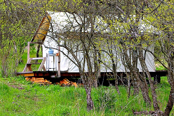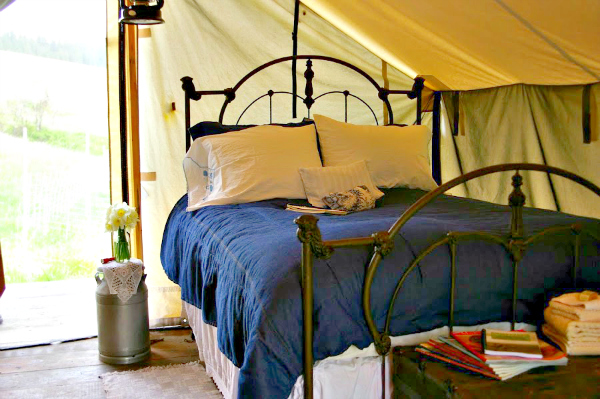 IDAHO: They set up wall tents in their old orchard for visitor farmstays.